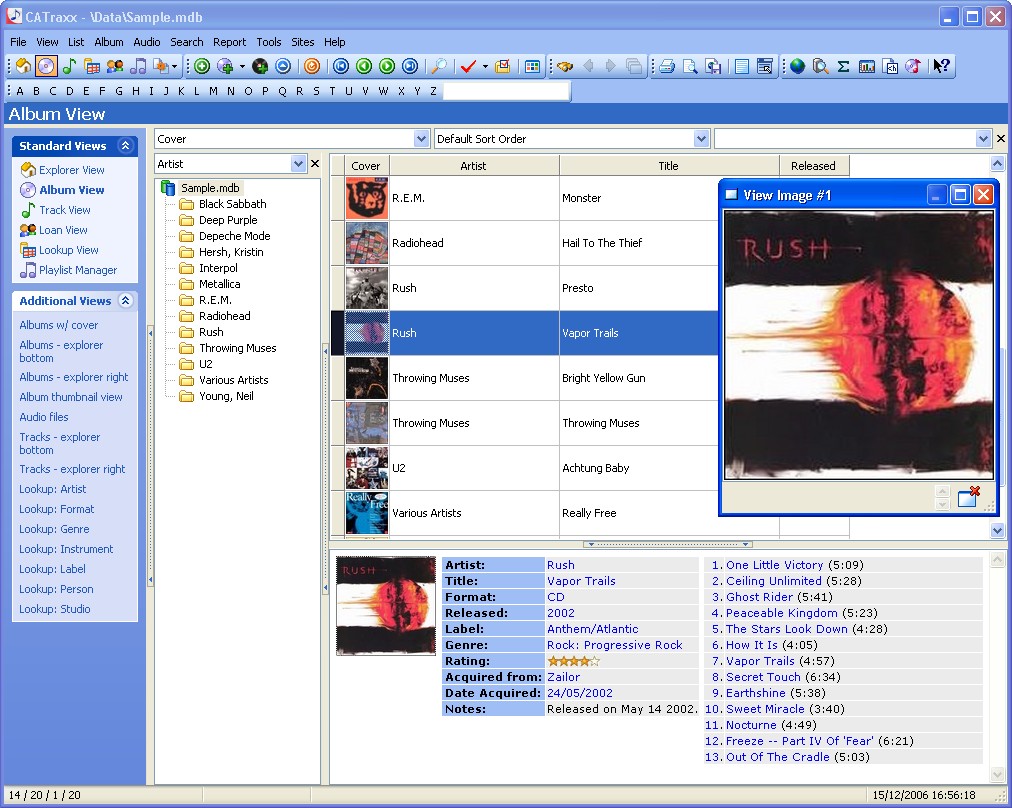 CATraxx is a powerful database program designed to help you maintain an inventory of your music collection. You can quickly catalog your collection by downloading CD data from CDDB - the worlds largest music database.