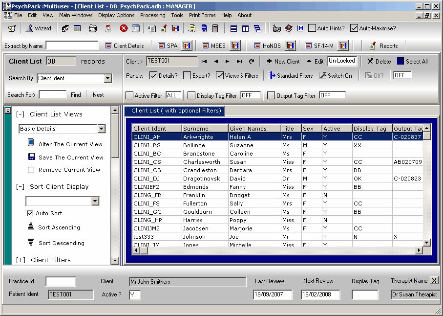 • PsychMinder records client information including diagnosis, assessments and reviews, searches for clients, writes simple to complex reports with a choice of various reporting and template options.