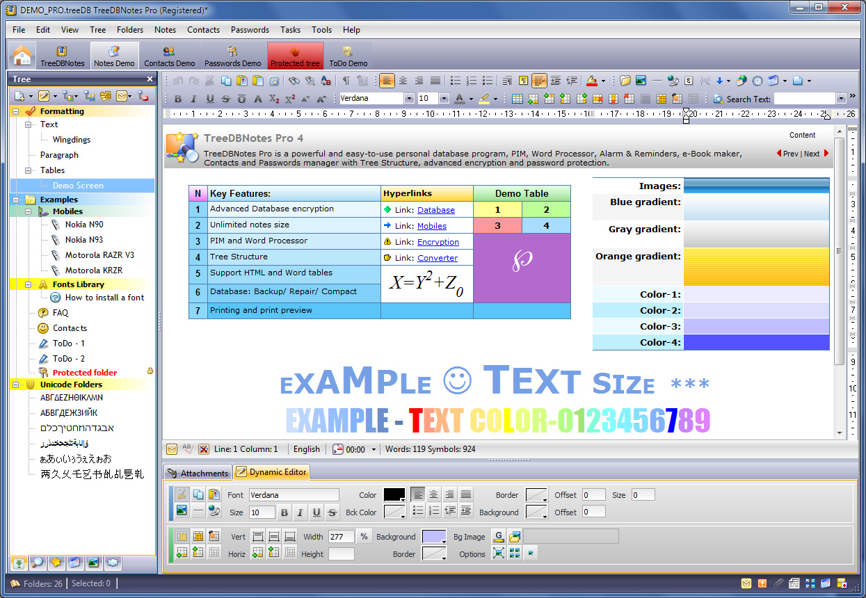 TreeDBNotes Pro is a powerful and easy-to-use personal database program, PIM, Word Processor, Alarm & Reminders, Contacts and Passwords manager, e-Book maker with Tree Structure, advanced encryption and password protection.