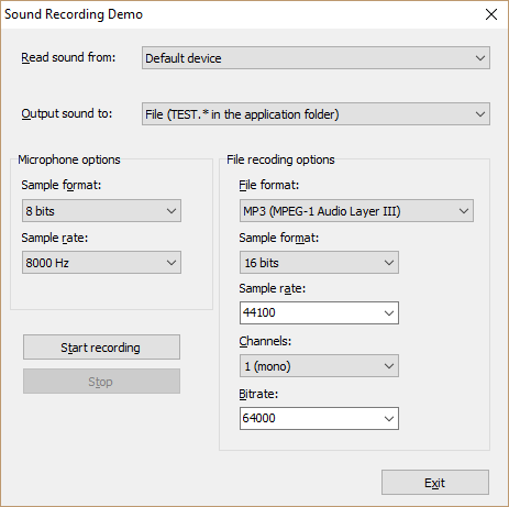 Location of this demo in the RVMedia installation: Recording\AudioRecorder\
