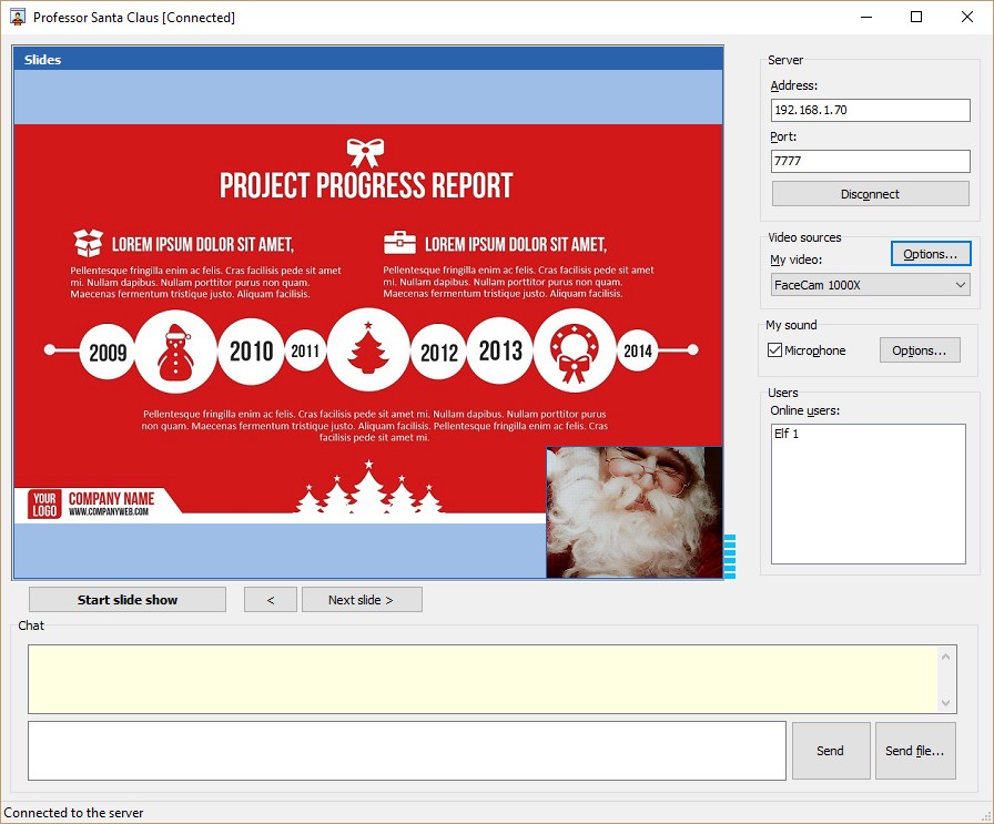 Location of this demo in the RVMedia installation: ClientServer\VideoChats\Lecture\