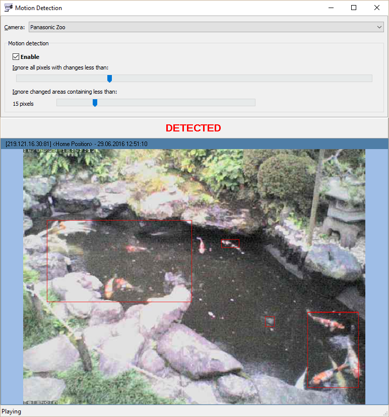 - motion detection areas: a frame is separated into areas of the specified size; changes are found in each area separately;