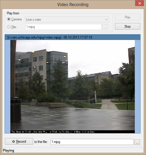 This demo shows how to record MJPEG video from a camera to a file, and how to play this file.