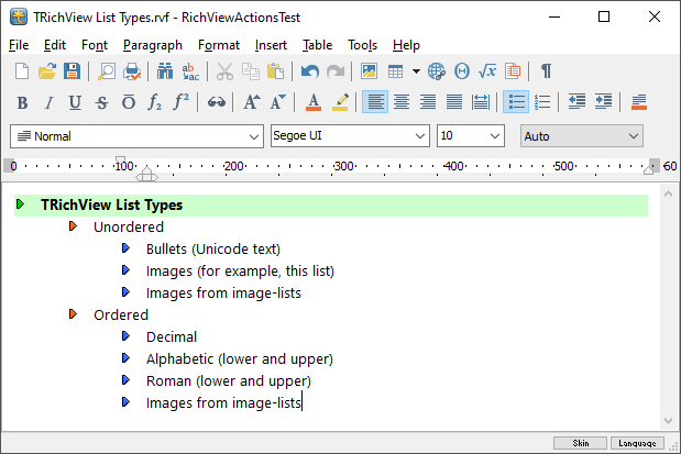 TRichView supports right-to-left text flow. In RTL paragraphs, list markers are displayed on the right side.