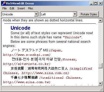 You can download the updated editor demo program with Unicode support (recompiling requires v1.2.6beta):
