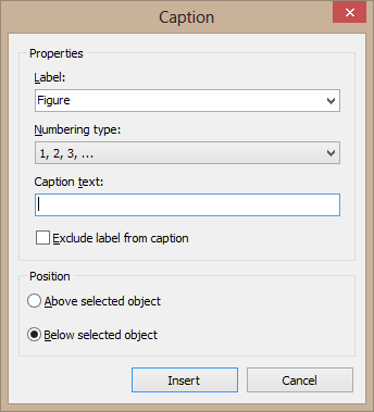 - for inserting a caption for an image or a table (screenshot)