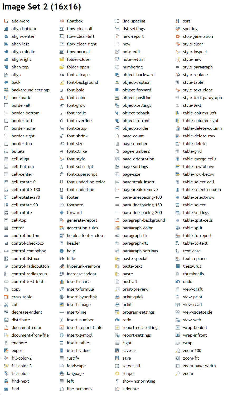 16x16 icons inspired by Microsoft Word 2013.