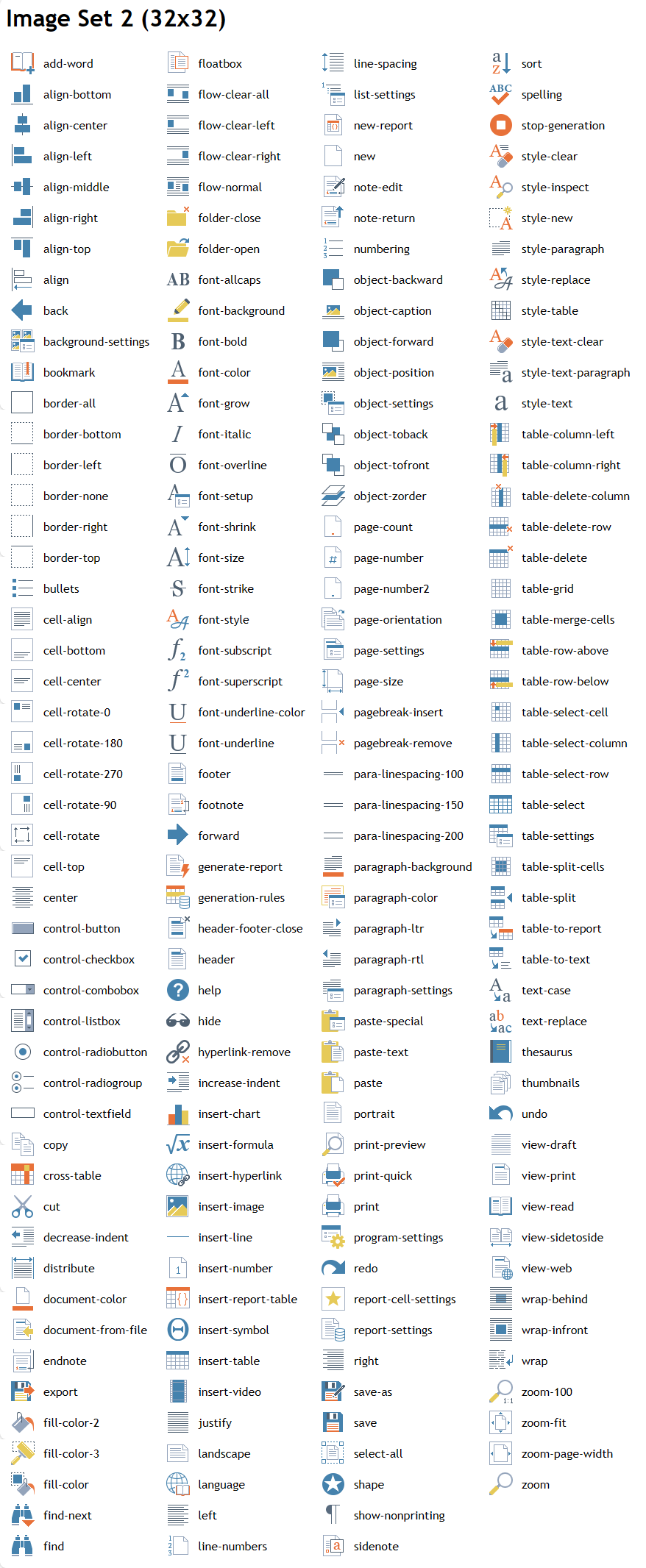 This is the second icon set we offer to our customers. Our icons are free for registered users of TRichView or RVMedia.